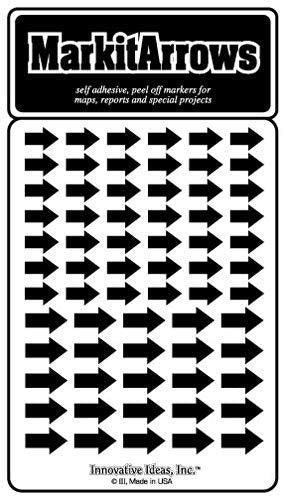 Assorted Sized, Opaque Black Mark-It Arrows are self-adhesive, peel-off identification markers, printed on high quality coated stock in two sizes! There are 134 sticker arrows per package, comprised of 84 small and 50 large black arrows. Mark-It Arrows are self adhesive, peel off markers for maps, reports, and special projects.