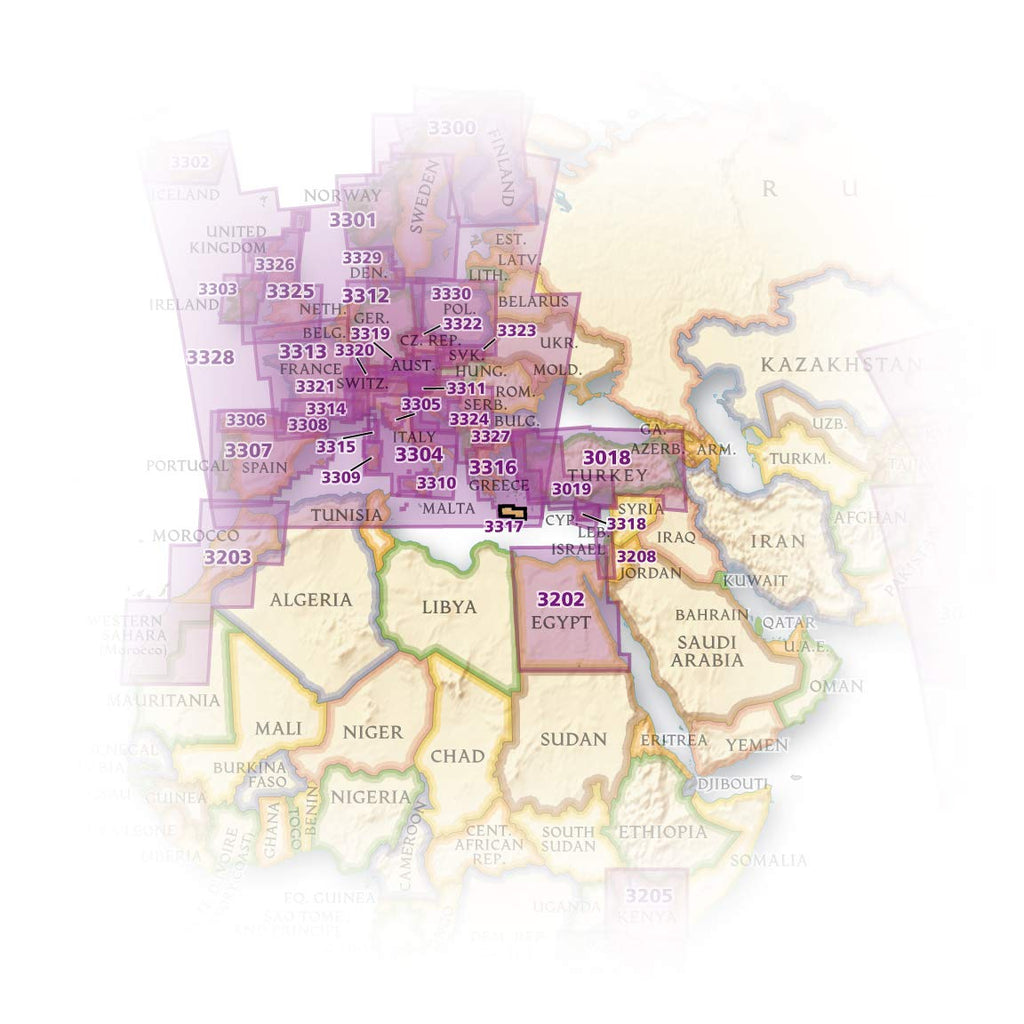 The front side of the print map details the eastern region of the island with the Sea of Crete to the north. The reverse side of the map shows the western region of the island with the Aegean Sea to the north and the Mediterranean Sea to the south. The locations of airports, airfield, harbors, and ferry routes take the guesswork out of travel around the island.
