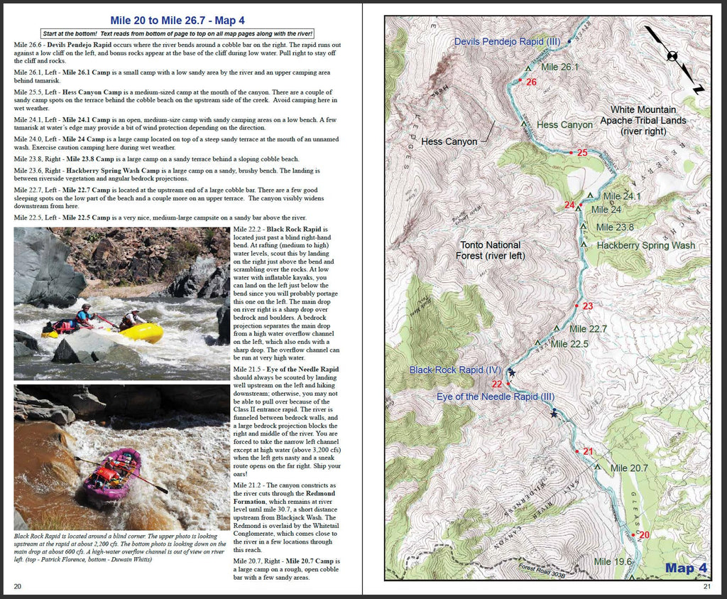 Our spiral-bound guidebooks are offset-printed on plastic pages. The covers are plastic card stock. The entire books are waterproof & tear-resistant (but not indestructible!). Our guidebooks include mile-by-mile descriptions of campsites, rapids, and points of interest & include many photographs.