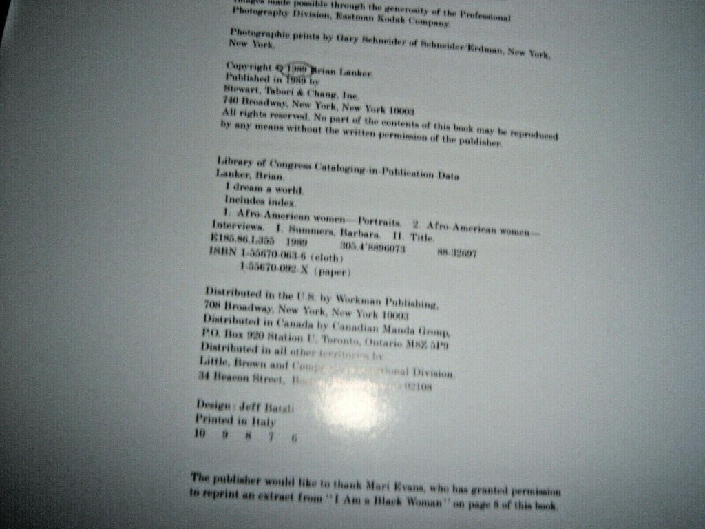 I Dream a World: Portraits of Black Women Who Changed America Barbara Summers; Brian Lanker and Maya Angelou