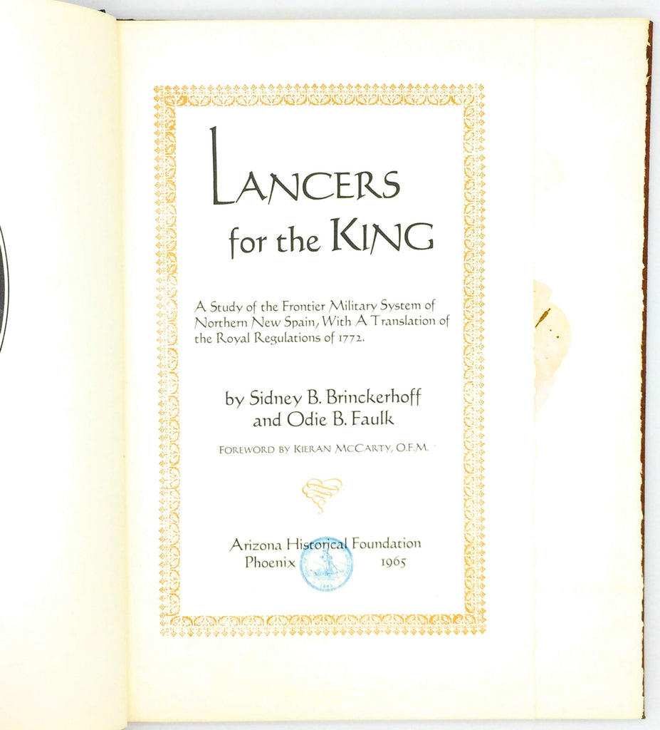 Lancers for the King: A Study of the Frontier Military System of Northern New Spain, with a Translation of the Royal Regulations of 1772 [Hardcover] Sidney B. Brinckerhoff and Odie B. Faulk