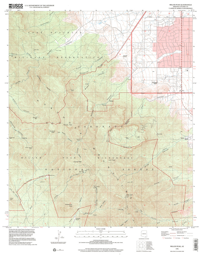 Miller Peak, AZ 1996 USGS 7.5 - minute topographic quadrangle map