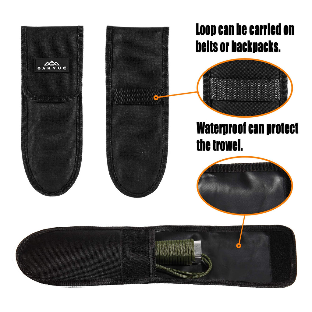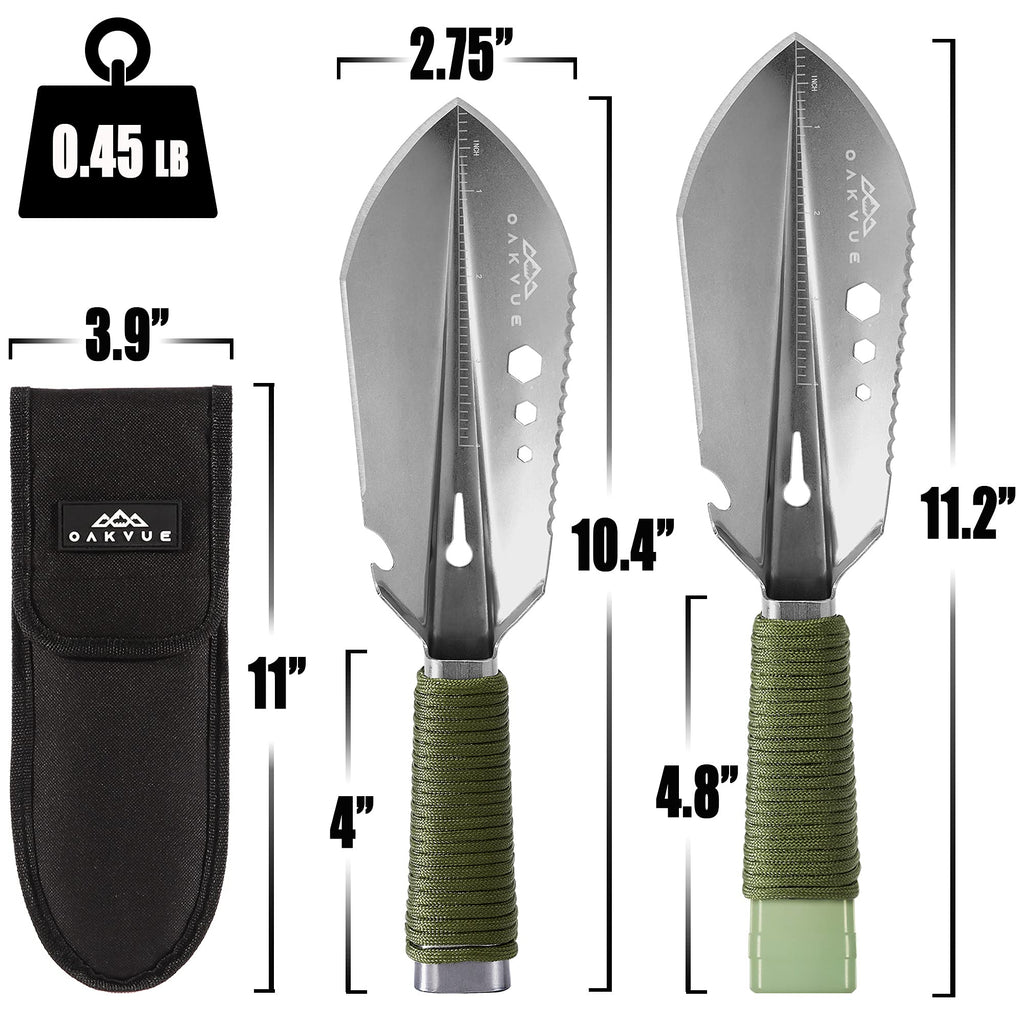 OAKVUE Backpacking Trowel – Lightweight Shovel for Camping, Hiking, Backpacking, Gardening – Compact Survival Multitool with Carrying Sheath (Silver)