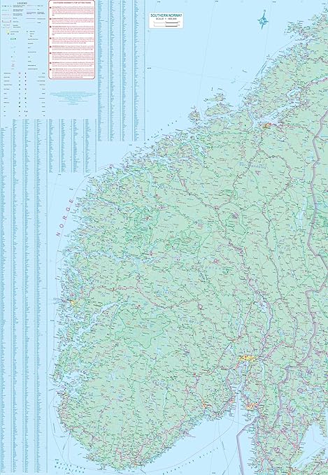 This map represents a major step forward for coverage of southern Norway. The map is now on tear-resistant stone paper and places Oslo and Bergen on one side, allowing us to include a large-scale map of all of southern Norway as far north as Trondheim on the other side. This covers the portion of Norway most visited and includes all the best-known fjords. The back cover also shows a schematic rendition of the 6 metro lines in Oslo, plus the tram network and the commuter rail from the airport into the city.