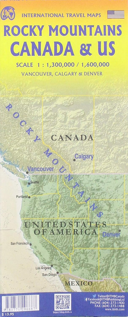 Rocky Mountains of Canada & US Travel Reference Map 1:1.3M/1.6M