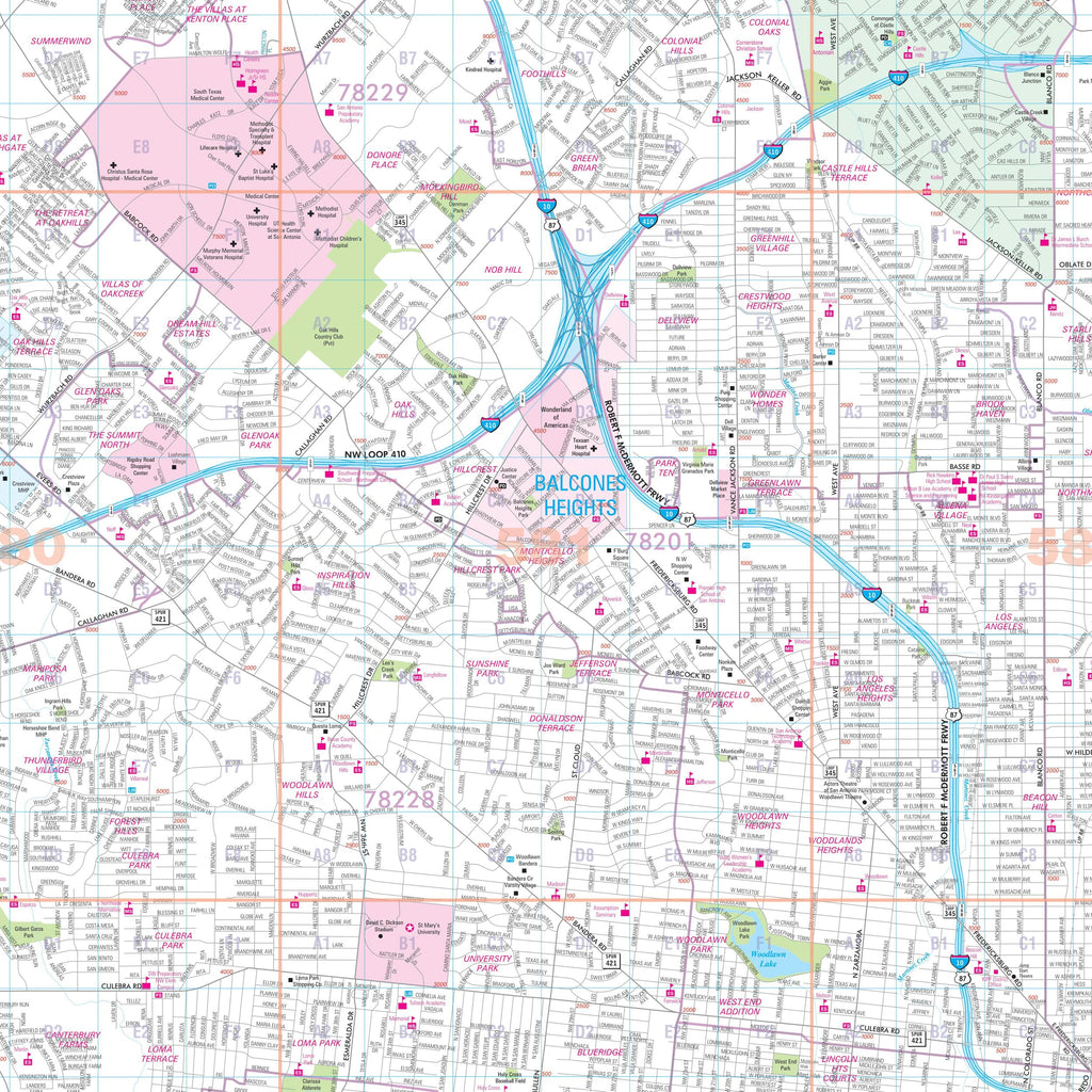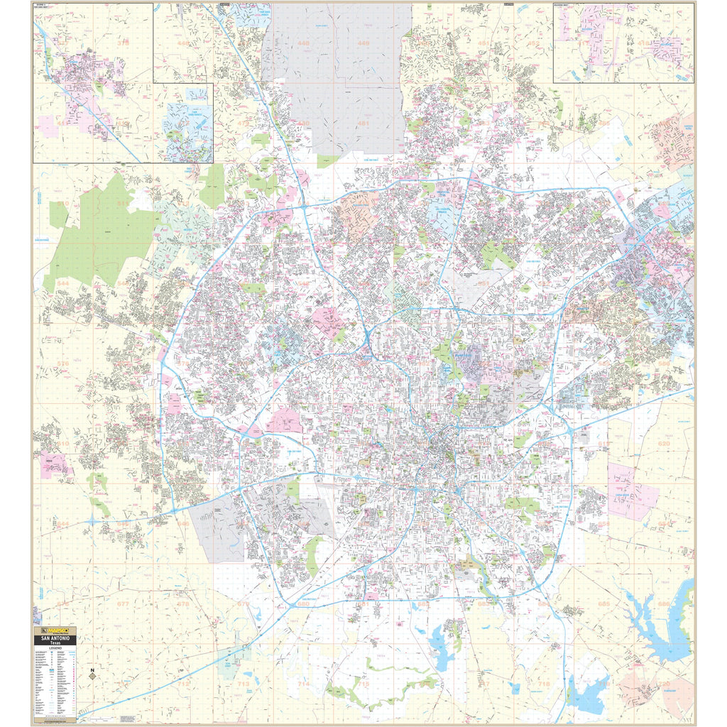 The San Antonio, Texas Wall Map provides complete street detail without specific measurements, points of interest, and ZIP codes.. The area of coverage for this map includes: