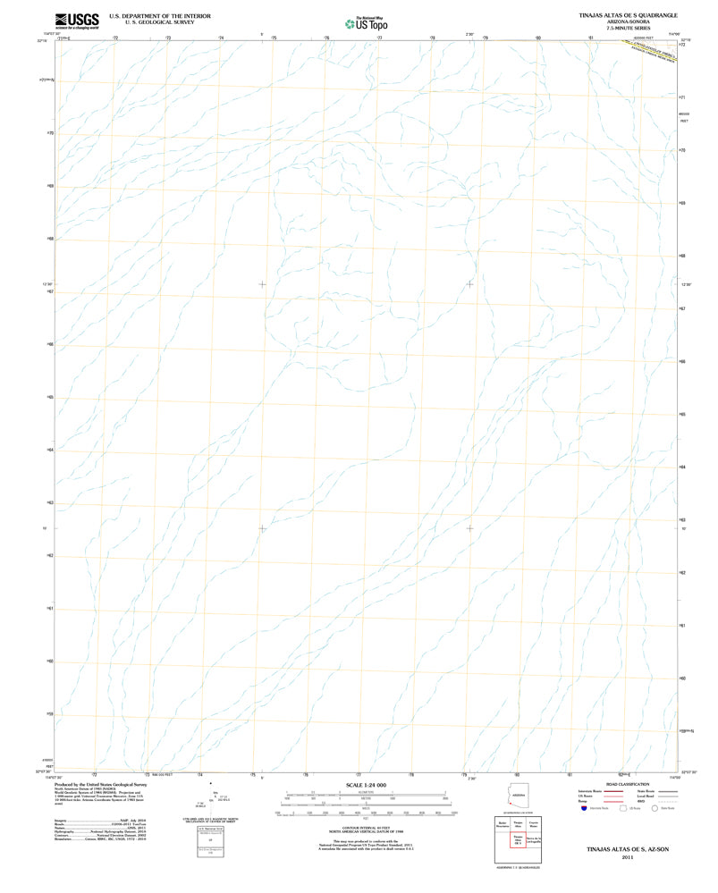 • Description: United States Geological Survey Tinajas Altas OE S, Arizona-Sonora The National Map Historical Reprint 7.5×7.5 Grid 24000-Scale US Topo 2011