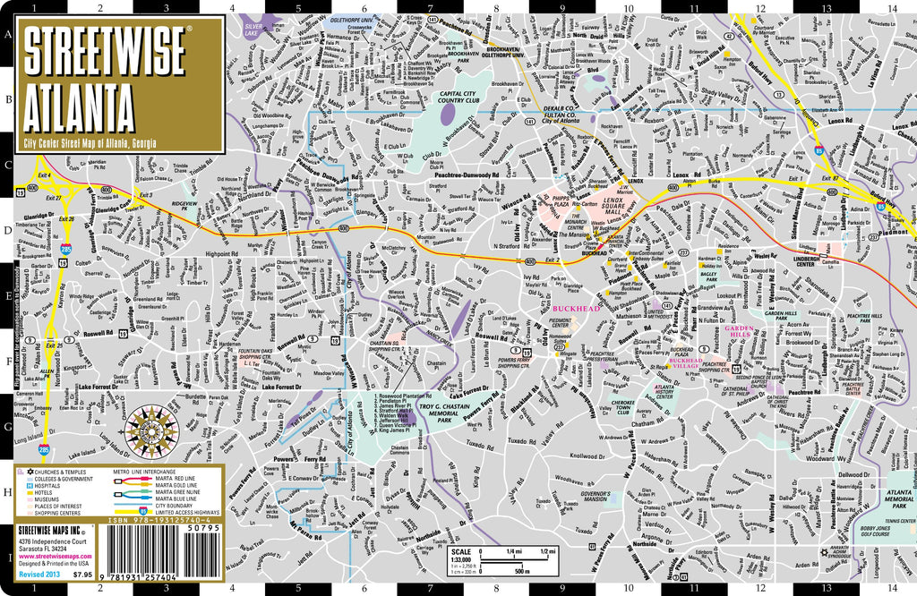 Streetwise Atlanta Map - Laminated City Center Street Map of Atlanta, Georgia Streetwise Maps