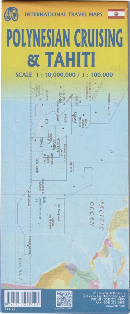 The Tahiti Islands are among the more popular touristic destinations of Polynesia. Side 1 shows Tahiti and an inset of the capital, Papeete, and other French Polynesian islands – Moorea, Maiao, Bora Bora, Maupiti, Tupai, Tahaa, Raiatea, and Huahine. All of French Polynesia is shown as an inset. Tahiti's Top Attractions are listed in a sidebar. Side 2 is a new venture for ITMB – a map of the entire Polynesia, showing cruise routes in the region covered, from Hawaii in the north to New Zealand in the south and from Papua New Guinea to the isolated Pitcairn Islands in the east A sidebar of Polynesia's Top Attractions is included, but a nice touch is to show underwater mounts and the way they join together the various island nations.