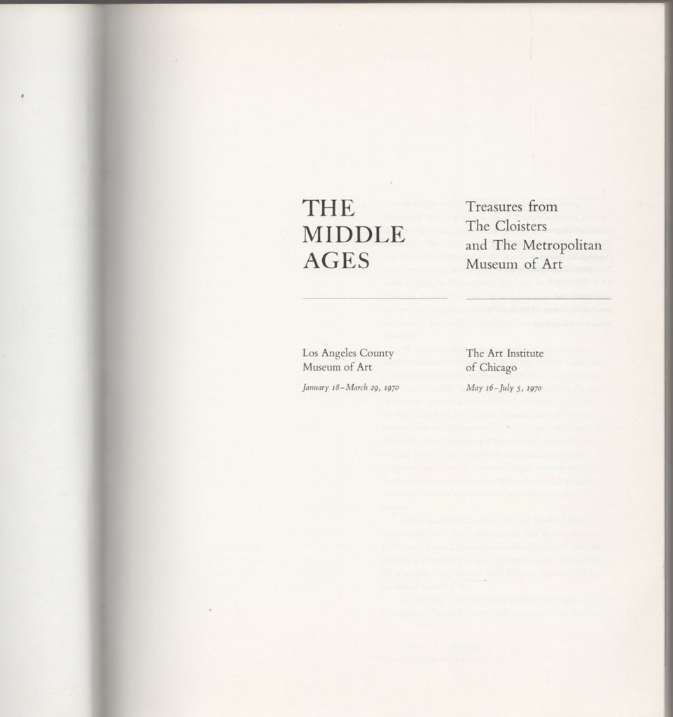 The Middle Ages; treasures from the Cloisters and the Metropolitan Museum of Art: Los Angeles County Museum of Art, January 18- March 29, 1970. The Art Institute of Chicago, May 16- July 5, 1970 Ostoia, Vera K.