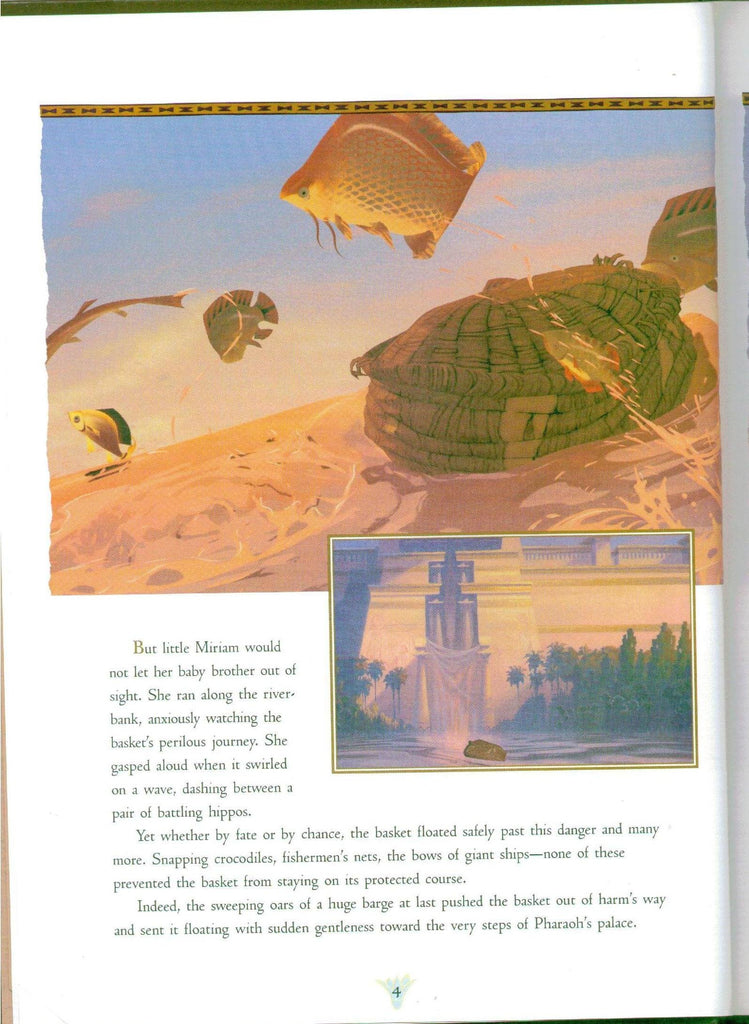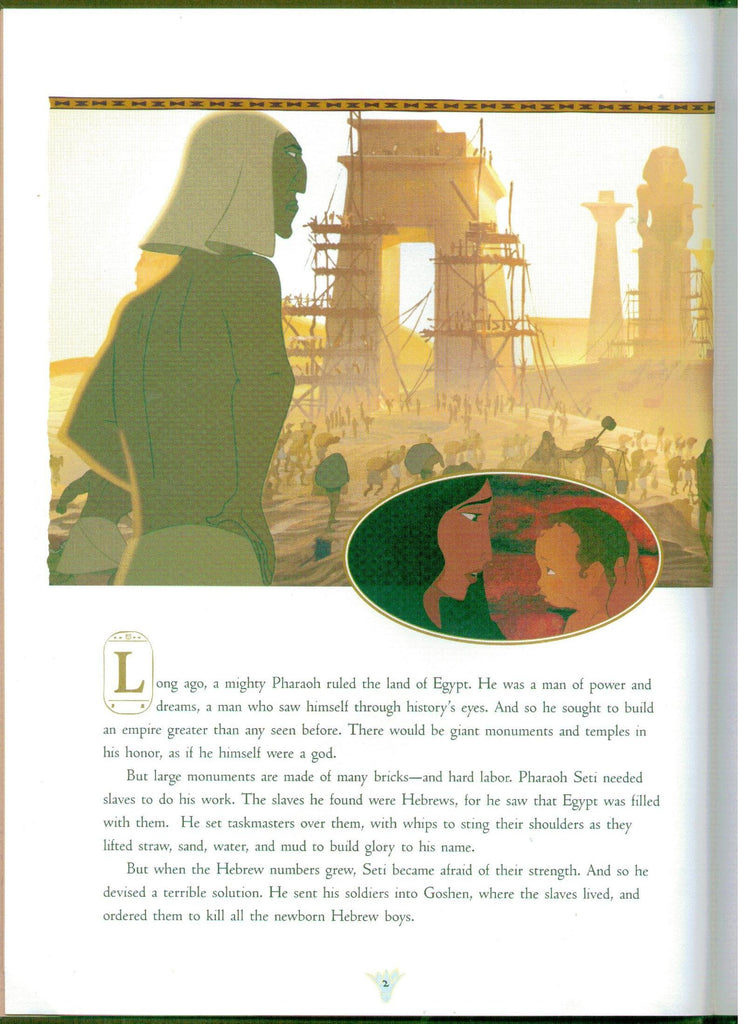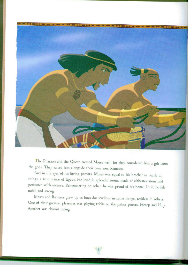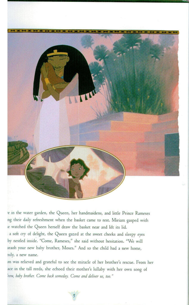 The story of Moses - the Prince of Egypt is engaging and enlightening. Included in the Collector's Edition toward the back is a section entitled How to Share this Book with your child. It reads: Below we have provided some suggestions for families who would like to explore the story of Moses further, both as it is told in The Prince of Egypt and as it is found in the Book of Exodus. Shared family discussion can greatly enrich your child's experience of reading this book and seeing the film. Questions Your Children May Ask Your children may ask you for help in understanding many events and themes in The Prince of Egypt. Before sharing The Prince of Egypt with your young children, you may want to familiarize or refamiliarize yourself with this important story. Questions children will ask are likely to fall into three key areas: questions about God and God's actions; questions about death; and questions about faith. Also listed in the back are MORE IDEAS for Discussion Sources for further information and the Note about this book.