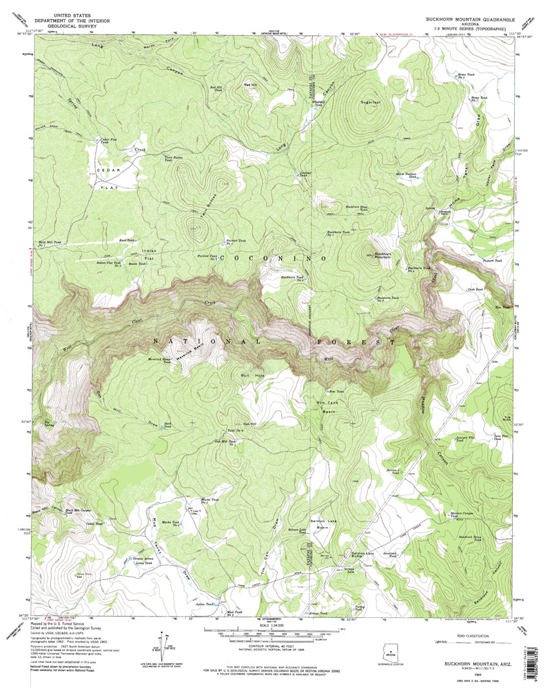 • Description: United States Geological Survey Buckhorn Mountain, Arizona Historical Map Reprint 7.5×7.5 Grid 24000-Scale 1965