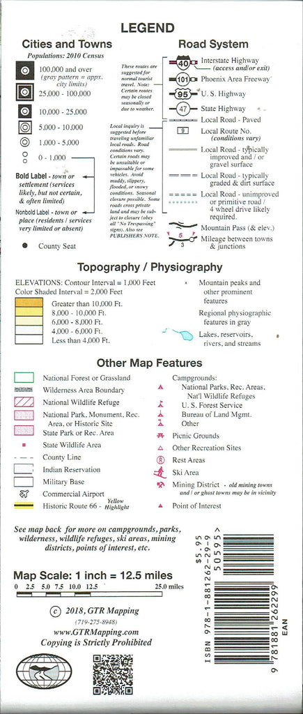 Topographic Recreational map of Arizona [Map] GTR Mapping and Donna Pylypczuk;Doug Scott