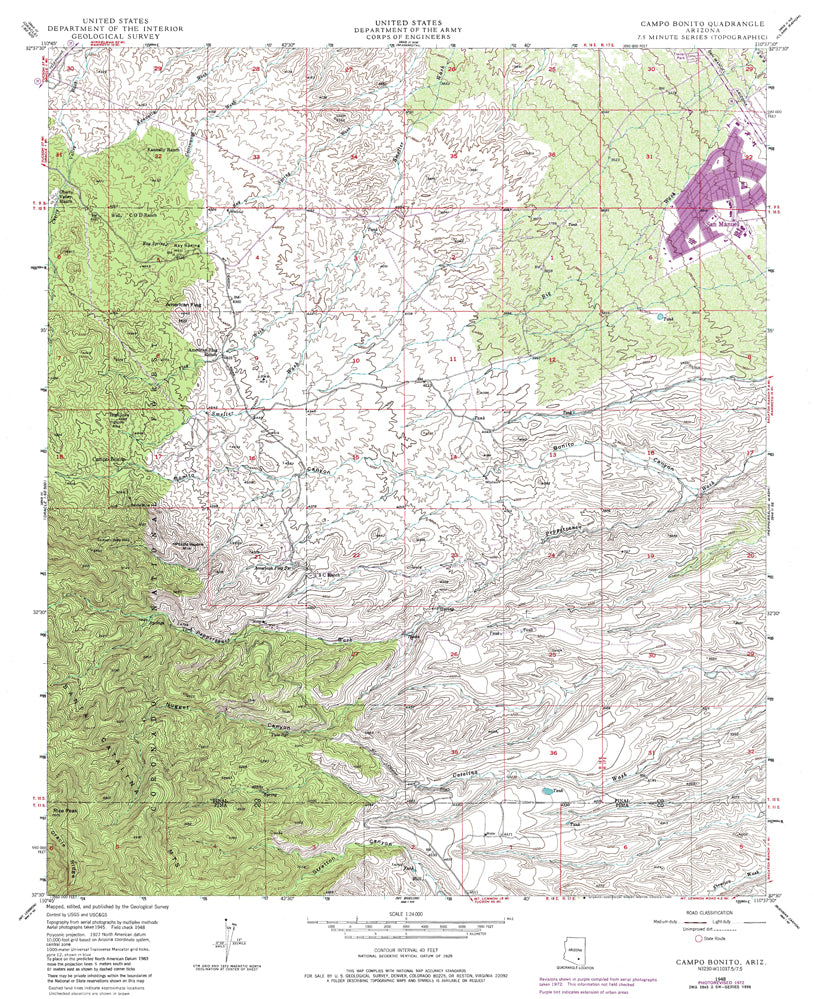 • Description: United States Geological Survey Campo Bonito, Arizona Historical Map Reprint 7.5×7.5 Grid 24000-Scale 1948 Photorevised 1972