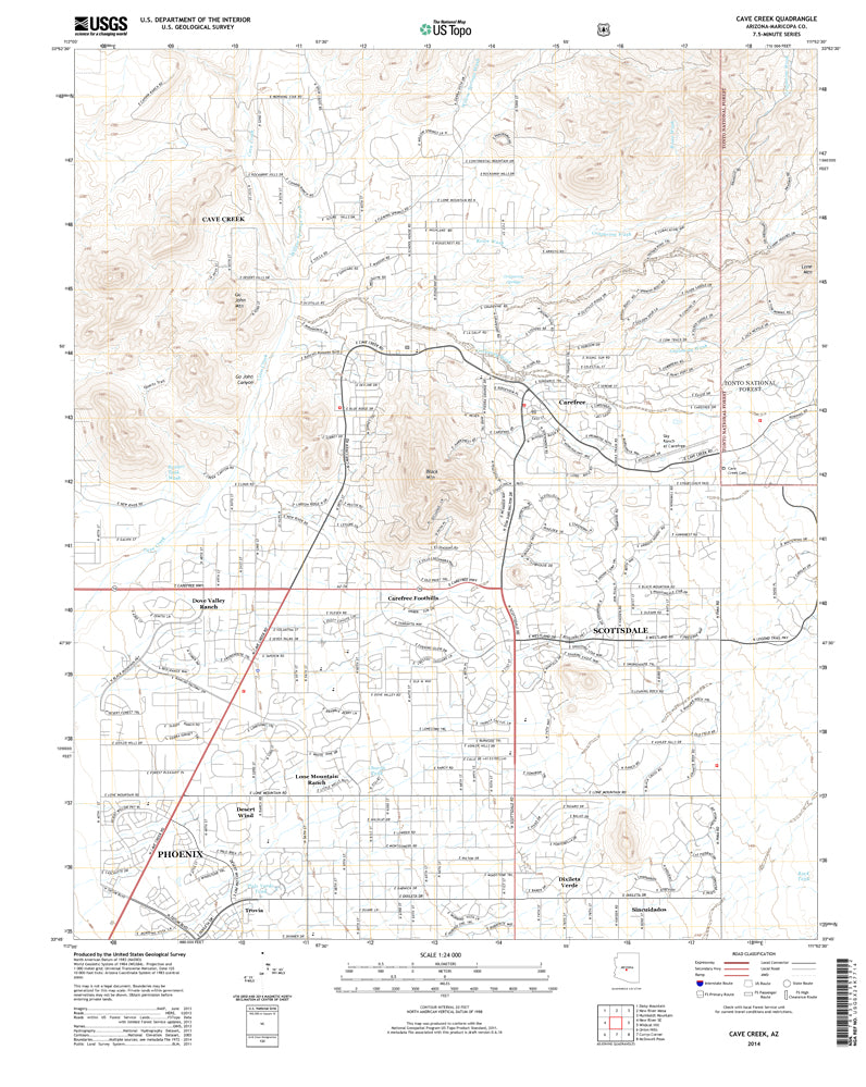 - Description: United States Geological Survey Cave Creek, Arizona The National Map Historical Map Reprint 7.5×7.5 Grid 24000-Scale US Topo 2014