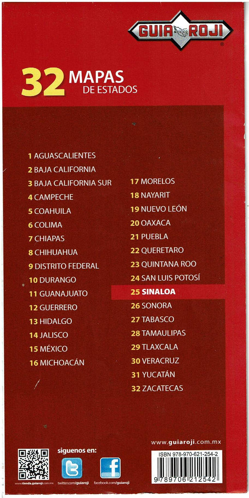 Guia Roji State of Sinaloa Road Network | Scale 1:945,000 is a practical fold-out map with information on state roads on a single sheet, ideal for planning routes. It has mileage information for the State of Sinaloa, Mexico.