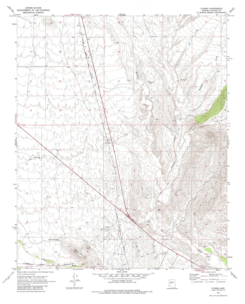 - Description: United States Geological Survey Flores, Arizona Historical Map Reprint 7.5×7.5 Grid 24000-Scale 1969