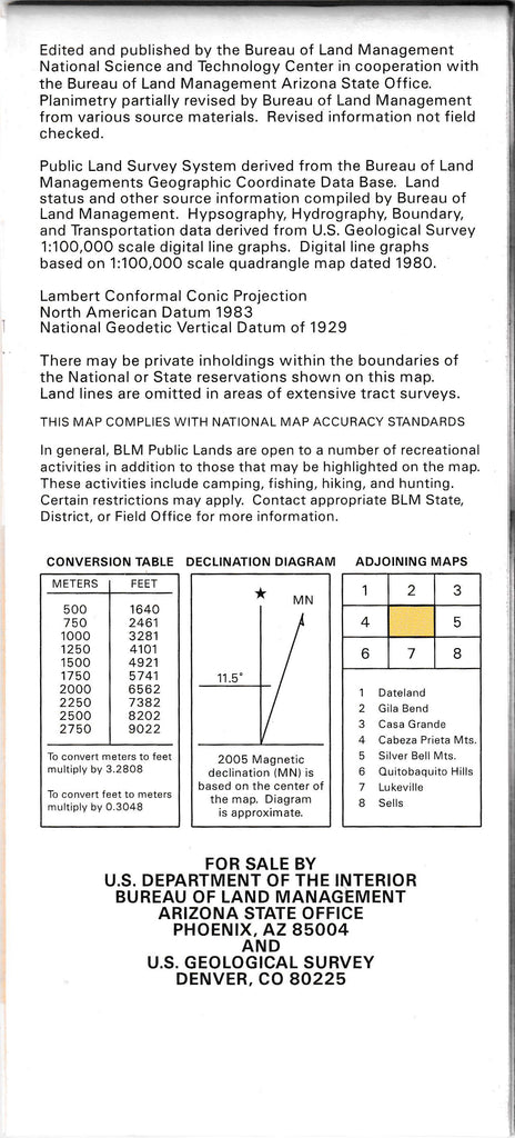 Ajo Arizona 1:100,000 Scale Topo Map BLM Surface Management 30x60 Minute Quad Bureau of Land Management
