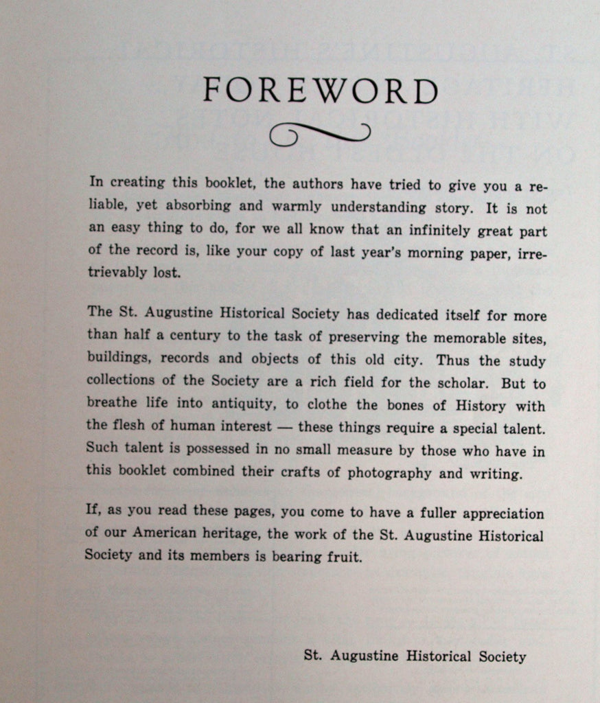 St. Augustine's Historical Heritage As Seen Today. 1974